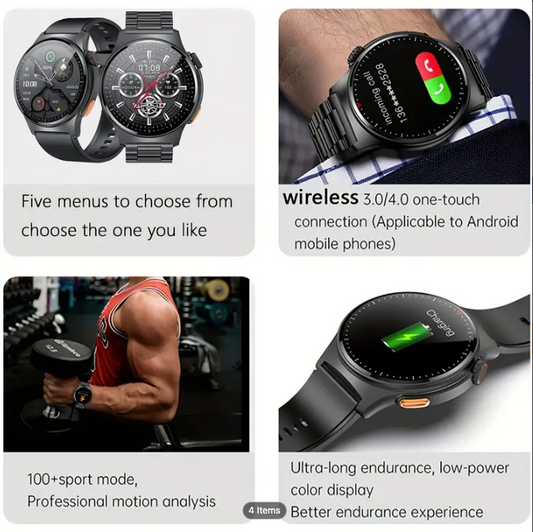AOVO QW33 Okosóra Magyar menüvel, Vezeték nélküli Hívás, 100+ Sporthoz, multifunkcionális, vérnyomás, pulzusmérő fekete fém és szilikon szíjjal