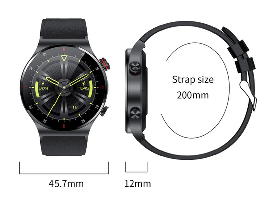 AOVO GT45 Magyar Nyelvű Okosóra – Pulzus-, Vérnyomás-, Véroxigénszint-, Vércukorszint- és EKG-mérés, Bluetooth Hívás, AMOLED Kijelző, Fekete