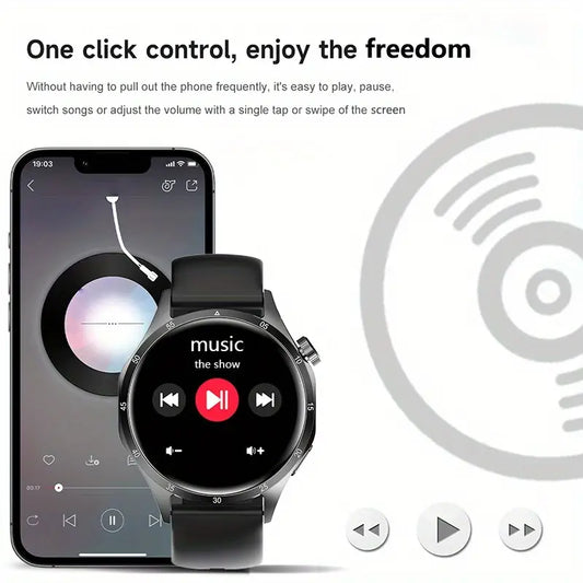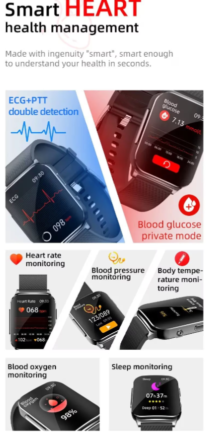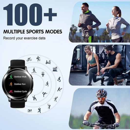 AOVO E400 Okosóra, 1.39" HD Kijelző, EKG PPG HRV, Vércukorszint/Vérnyomás/Oxigén/Hőmérséklet Mérő Vízálló, Fekete