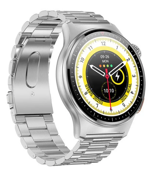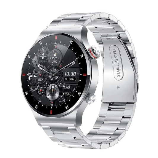 QW33 Okosóra Magyar menüvel, Vezeték nélküli Hívás, 100+ Sporthoz, multifunkcionális, vérnyomás, pulzusmérő készlet ezüst fém és szilikon szíj