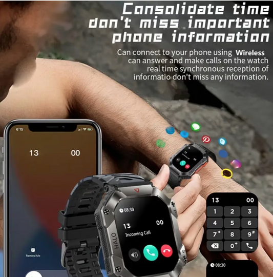 AOVO KR80 okosóra, 2 inch, 620 mAh, 2 óraszíj, hívás funkció, hangasszisztens, pulzusszám, vérnyomás,IP67, időjárás, Fekete