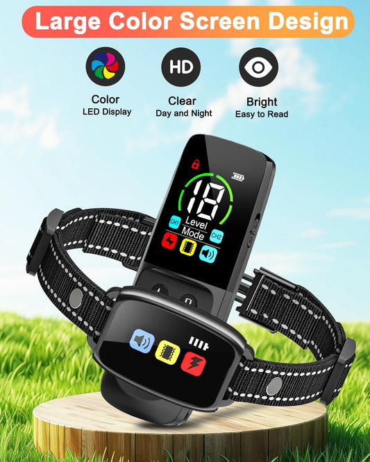 AOVO Okos Kutyanyakörv Érintőkijelzővel – Ugatásgátló, Rezgés, Hang, Biztonságos Elektromos Impulzus – Újratölthető, Vízálló Nyakörv Minden Méretű Kutyához