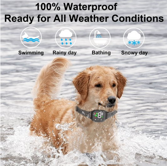 AOVO Automatikus ugatásgátló nyakörv edzéshez, Újratölthető, Gumielektródák, 8 fokozat, Víz- és porálló