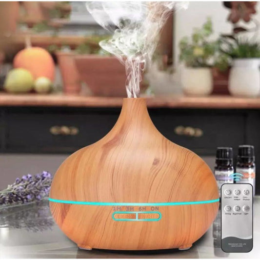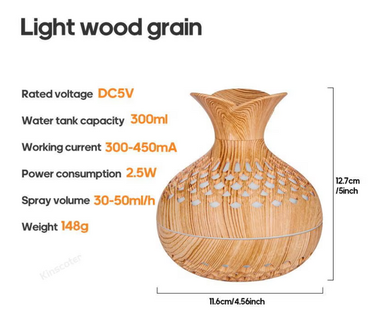 AOVO Fa hatású Aromaterápiás Diffúzor Ultrahangos párologtató 7 színű LED fénnyel, Világosbarna 500ML.