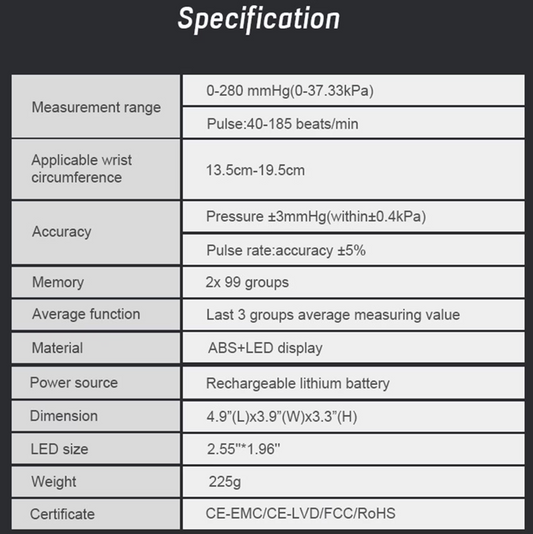 AOVO csuklós vérnyomásmérő, ohmméter, LED kijelző, Hangos közvetítés angol nyelven, 90 memóriakészlet két személyre, Újratölthető, Gyors automatikus mérés, Fekete