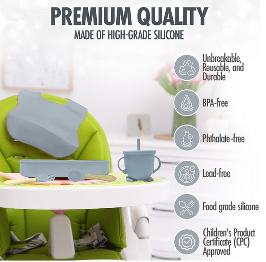 AOVO baba etetőkészlet, 10 db, szilikon,BPA allergénmentes, Kék