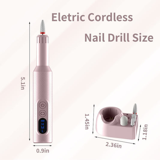 AOVO Elektromos körömvágó, B8811, 18000rpm, kerámia fúróval, 6 professzionális fúróval, F/R irány, LED kijelző, Rózsaszín