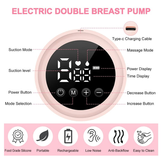 AOVO dupla elektromos mellszívó, 2 üzemmód és 9 szívási fokozat, masszázs üzemmóddal, BPA mentes, alacsony zajszint, Átlátszó