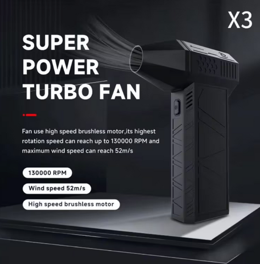 Hordozható légfúvó Turbo Jet Fan, 130000 RPM, 52M/s, 180W, 3 fokozat, autóhoz, grillhez és számítógéphez, Levelek, por és víz eltávolítása
