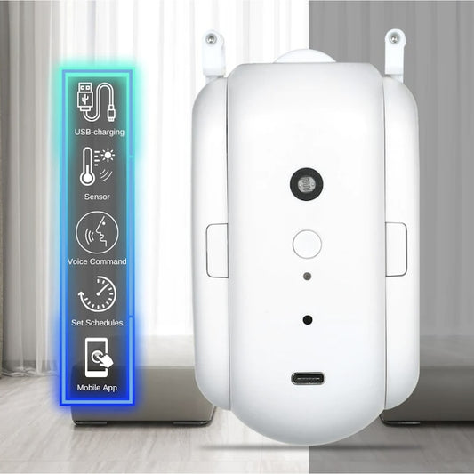 Függöny automata robot, vezeték nélküli, fehér, hangvezérlés, Tuya alkalmazás, okos fény- és hőmérsékletszenzorral