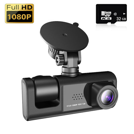 Háromszoros Fedélzeti Kamera, Full HD 1080P, 170° Szög, Éjjellátó, G-Érzékelő, 32GB Kártyával