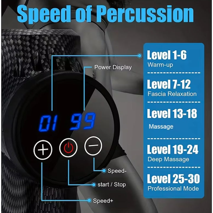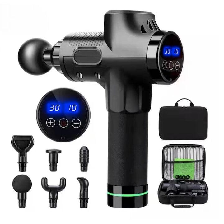 A pisztoly 30 állítható intenzitási fokozattal és 10 különböző masszázsfejjel rendelkezik, hogy minden izomcsoport számára tökéletes kezelést biztosítson.