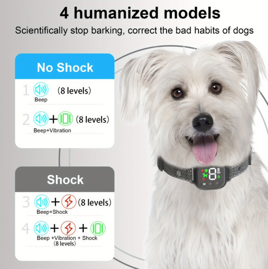 AOVO Okos Kutyanyakörv Érintőkijelzővel – Ugatásgátló, Rezgés, Hang, Biztonságos Elektromos Impulzus – Újratölthető, Vízálló Nyakörv Minden Méretű Kutyához
