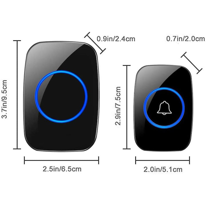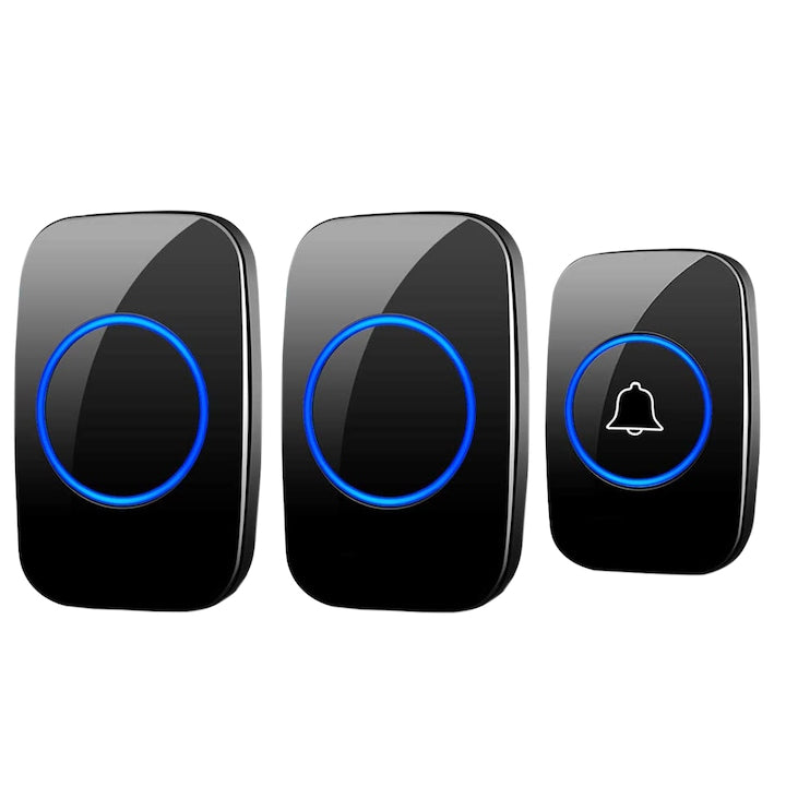 AOVO vezeték nélküli csengő, vízálló gomb, 2 x kézi beszélő, 4 hangerőszint, 36 dal, LED fény, fekete