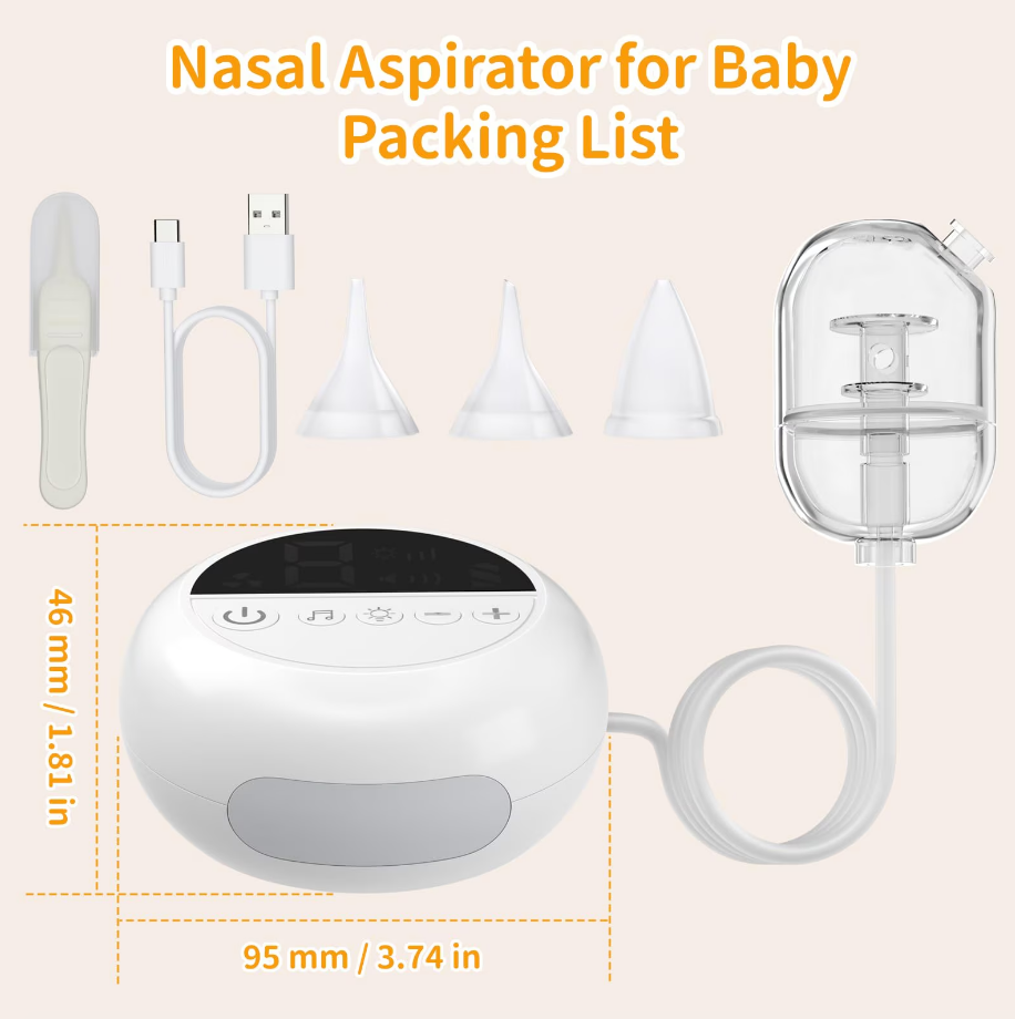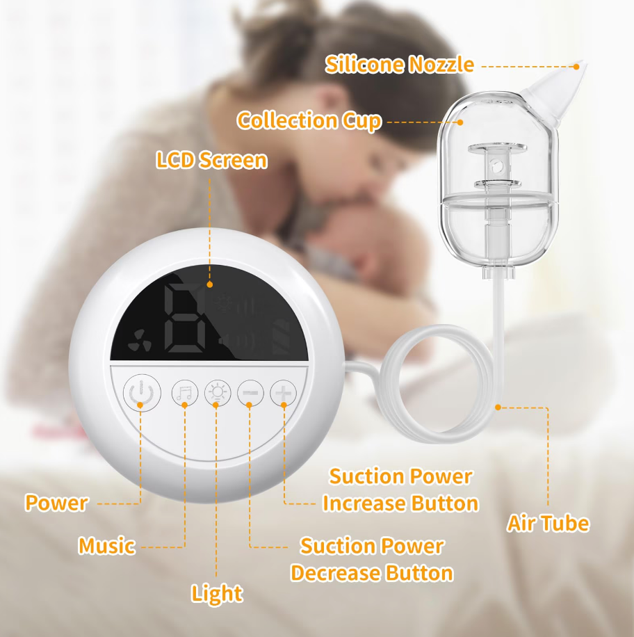 Prémium Elektromos Orrszívó Babáknak – 9 Fokozat, Éjszakai Fény és Nyugtató Zene – USB-s, Hordozható